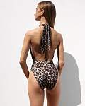 Женский слитный купальник изготовлен из эластичной и мягкой ткани, состоящей из 80% полиамида и 20% лайкры. Оригинальный леопардовый фирменный принт купальника придаёт оригинальность Вашему образу. Вшитые чашечки на сетчатой подкладке обеспечивают превосходную поддержку груди и идеальное прилегание к телу. Деликатная закрытая форма ягодиц и надёжная фиксация на шее сзади с помощью завязок гарантируют максимальный комфорт при надевании купальника.