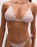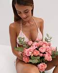 Женский лиф с цветочным принтом и завязками на шее и спине изготовлен из бархатистой ткани, которая не линяет, легко стирается и не мнётся. Бюстгальтер имеет высокий уровень износостойкости, не линяет и устойчив к воздействию морской воды и воды в искусственных водоёмах. Он превосходно садится на тело и обеспечивает комфорт благодаря нежной и деликатной ткани.
