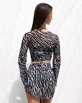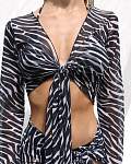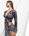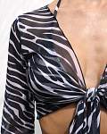 Женский пляжный топ из фирменной сетчатой ткани в черно-белом принте с завязкой на груди — идеальный аксессуар для вашего летнего купального образа. Лёгкий сетчатый топик с длинными свободными рукавами и аккуратно обработанными краями гарантирует долгий срок службы. Высококачественная и комфортная ткань устойчива к воздействию солёной морской воды и средств для бассейнов, не линяет и быстро сохнет.