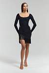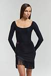 Гимнастический купальник с глубоким округлым вырезом на спине позволит окружающим любоваться Вашей бархатистой кожей. Длинные рукава танцевального боди создают строгий и утонченный силуэт. Трусики - стринги без застежек.