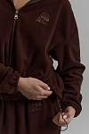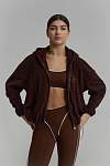 Спортивная укороченная куртка выполнена в благородном коричневом цвете из мягкого и уютного флиса, который дарит ощущение тепла и комфорта. Материал приятен к телу, хорошо сохраняет форму и не теряет внешний вид после множества стирок.