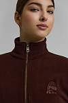 Женская спортивная куртка выполнена в благородном коричневом цвете из мягкого и уютного флиса, который дарит ощущение тепла и комфорта. Материал приятен к телу, хорошо сохраняет форму, легко стирается и не теряет внешний вид даже после множества стирок.