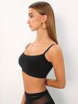 Топ в от бренда PRIMABELLA. Женский черный топик со вшитыми бесшовными чашечками, моделирующими элегантные очертания груди. Регулируемые бретели и фирменный эластичный материал, который легко стирается, не линяет и быстро сохнет. Топ надевается через голову и не имеет застежек.