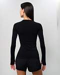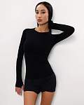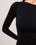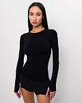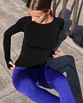 Удлинённые рукава реглан с отверстиями для больших пальцев предотвращают их поднятие во время тренировок. Округлый вырез горловины достаточно широкий для комфортного надевания. Этот женский лонгслив прекрасно подойдёт как для занятий спортом, так и для повседневной носки.