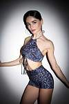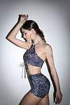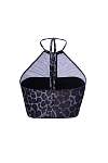 Женский топ для бачаты и латины от бренда танцевальной одежды PRIMABELLA в фирменном леопардовом принте серых оттенков. Топик оснащен съемными чашечками, которые идут в комплекте, позволяя носить его и на спортивные мероприятия, и на повседнев. Топ фиксируется завязками на шее, а так же имеет главный элемент дизайна - вертикальную регулируемую на тесёмках кулиску на груди, что позволяет регулировать степень драпировки ткани и длину топа.