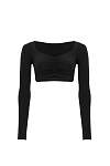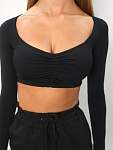 Топ из спортивного, дышащего материала от бренда PRIMABELLA с длинными рукавами и глубоким вырезом декольте позволит обратить на себя максимум внимания. Главным элементом дизайна является густая сборка по центру груди, что подчеркивает грудь, добавляет объем и оригинальность образу. Благодаря высокоэластичной ткани, топ превосходно сидит по фигуре, словно вторая кожа. Топ имеет вшитые бесшовные чашечки, моделирующие элегантные очертания груди, а плотная резинка под грудью обеспечивает эффективную её поддержку.