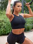 Женский спортивный топ-бра на молнии — идеальный выбор для тех, кто предпочитает активный образ жизни. Он обеспечивает оптимальную поддержку груди благодаря широкому эластичному поясу под грудью и вшитым чашечкам на сетчатой подкладке. Защитная планка внизу молнии предотвращает дискомфорт при движении, а удобная застёжка на крючке облегчает процесс застёгивания.